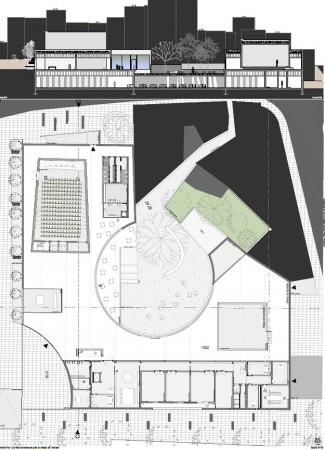 Piso 1 - Entrada, Auditório, Livraria, Cafetaria, Escritórios, Espaço para Exposição | 1st floor - Entrance, Auditorium, Library, Coffee Shop, Office, Exhibition Space